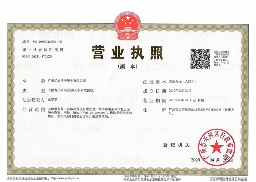 廣州億潔清潔服務有限公司是經(jīng)廣州市工商行政管理局批準成立的(注冊資本:100萬元人民幣)。具有獨立法人資質(zhì)。公司成立2015年,公司具備完善的管理體系和高素質(zhì)管理隊伍,擁有特種技術(shù)人員33名,保潔服務人員上萬名,覆蓋廣州市,能及時調(diào)配并快速投入高效運行。我們的每個員工都經(jīng)過公司的嚴格篩選,嚴格培訓,定期培訓后持證上崗以保證服務品質(zhì),保障客戶的權(quán)利,利益,形象等不受損失。 廣州億潔清潔公司是一家設備齊全,技術(shù)強大的綜合型清潔服務公司,為客戶提供完善服務尊定了堅定的基礎(chǔ)。 司于2010年全面推行了ISO9001質(zhì)量管理體系認證和ISO14001國際環(huán)保體系認證。先后獲得廣州高層建筑外墻清洗維修作業(yè)【安全資質(zhì)證書】、【廣州環(huán)衛(wèi)企業(yè)等級證書C級資質(zhì)】、廣州疾控中心頒發(fā)的【四害消殺服務資質(zhì)證】、【空氣治理A級資質(zhì)】、中國石材協(xié)會頒發(fā)的【石材資質(zhì)B級資質(zhì)】等。 廣州億潔清潔服務有限公司致力于打造專業(yè)、實惠、靠譜的保潔服務公司,把專業(yè)的事情交給專業(yè)的我們,您放心! 億潔清潔服務項目: 廣州保潔服務:新建樓宇、別墅、酒店、醫(yī)院、辦公樓、賓館、企事業(yè)單位廠房竣工后開荒及裝修后精細保潔.工程保潔服務。 廣州物業(yè)托管:為廣州市各大企事業(yè)單位、賓館、政府機關(guān)、小區(qū)物業(yè)、酒店及廠房提供專業(yè)化保潔、園林、設施維護等管理服務。 廣州高空作業(yè):高空玻璃幕...[詳情]